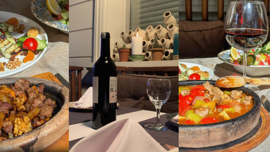 The menu is a celebration of Turkey’s diverse regional dishes, carefully prepared with fresh, local ingredients. Start with a variety of traditional mezze like velvety hummus, smoky baba ghanoush, and zesty acılı ezme, each crafted to awaken your palate. For the main course, the restaurant’s grilled lamb and chicken kebabs are highlights, cooked to perfection and bursting with rich flavors. For seafood lovers, the steamed sea bass served with seasonal vegetables provides a light yet satisfying option.